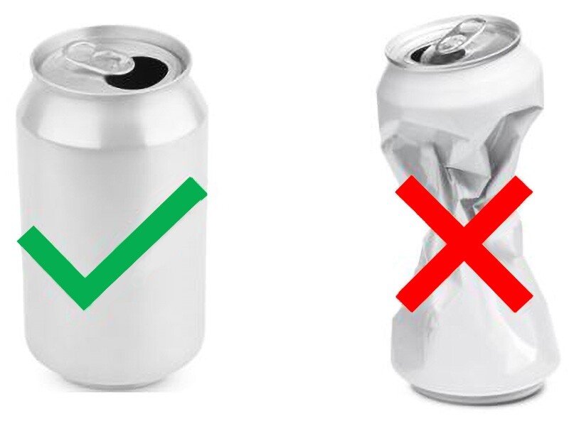 Een blik mag niet tot nauwelijks ingedeukt worden omdat dit een effect kan hebben op de leesbaarheid van de EAN code voor de telmachine van Statiegeld Nederland.